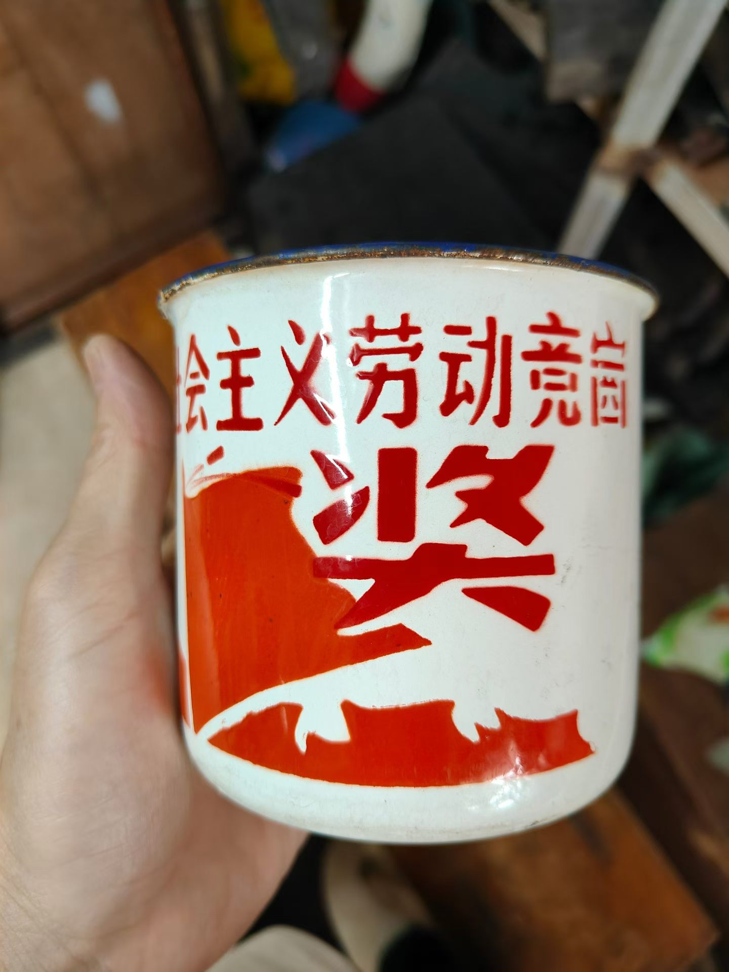 → 社会主义劳动竞赛奖,搪瓷盅一个