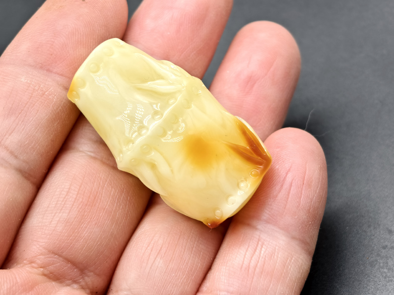 原矿额料,精工满蜡。《节节高》,高39.8mm,宽23mm,厚19.8mm,重8.5克。