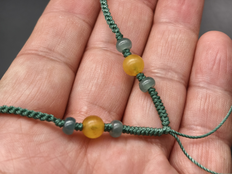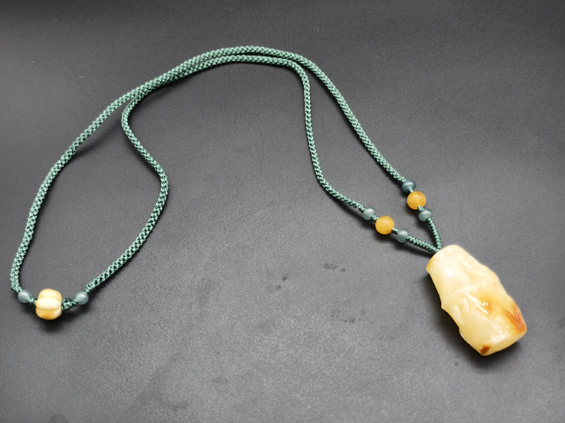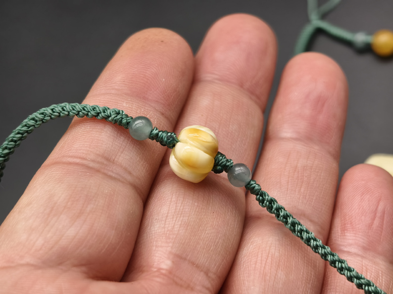 (挂绳为手工精编,含冰种A货翡翠6颗,蜜蜡圆珠2颗,蜜蜡瓜珠1颗,男女均可佩戴)