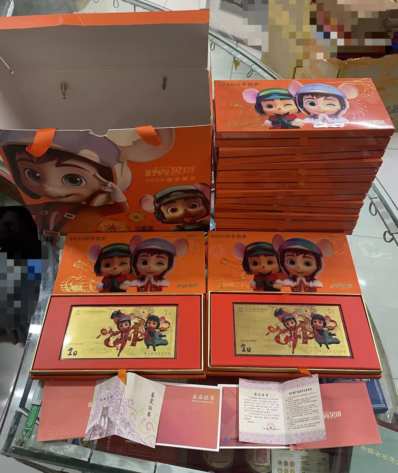 出2018、19、20建行生肖1克金钞29套(原包装)