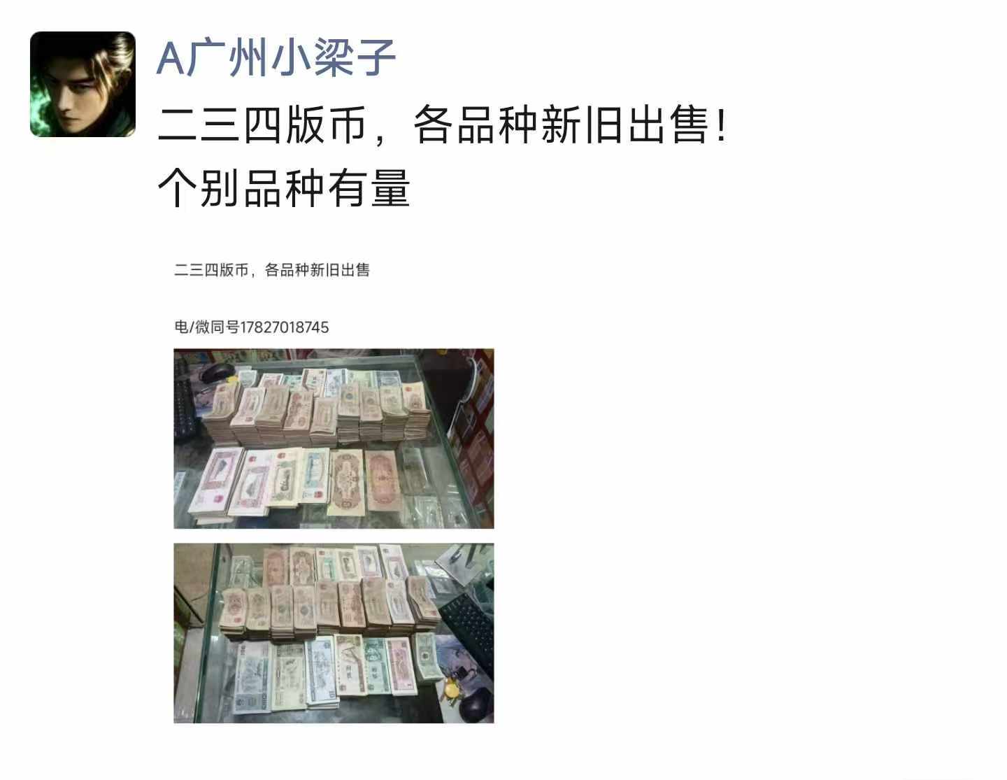 确认一批原票旧品三版币共计1417款已转微信