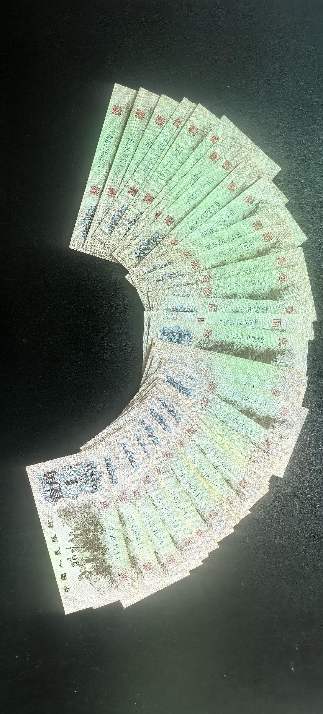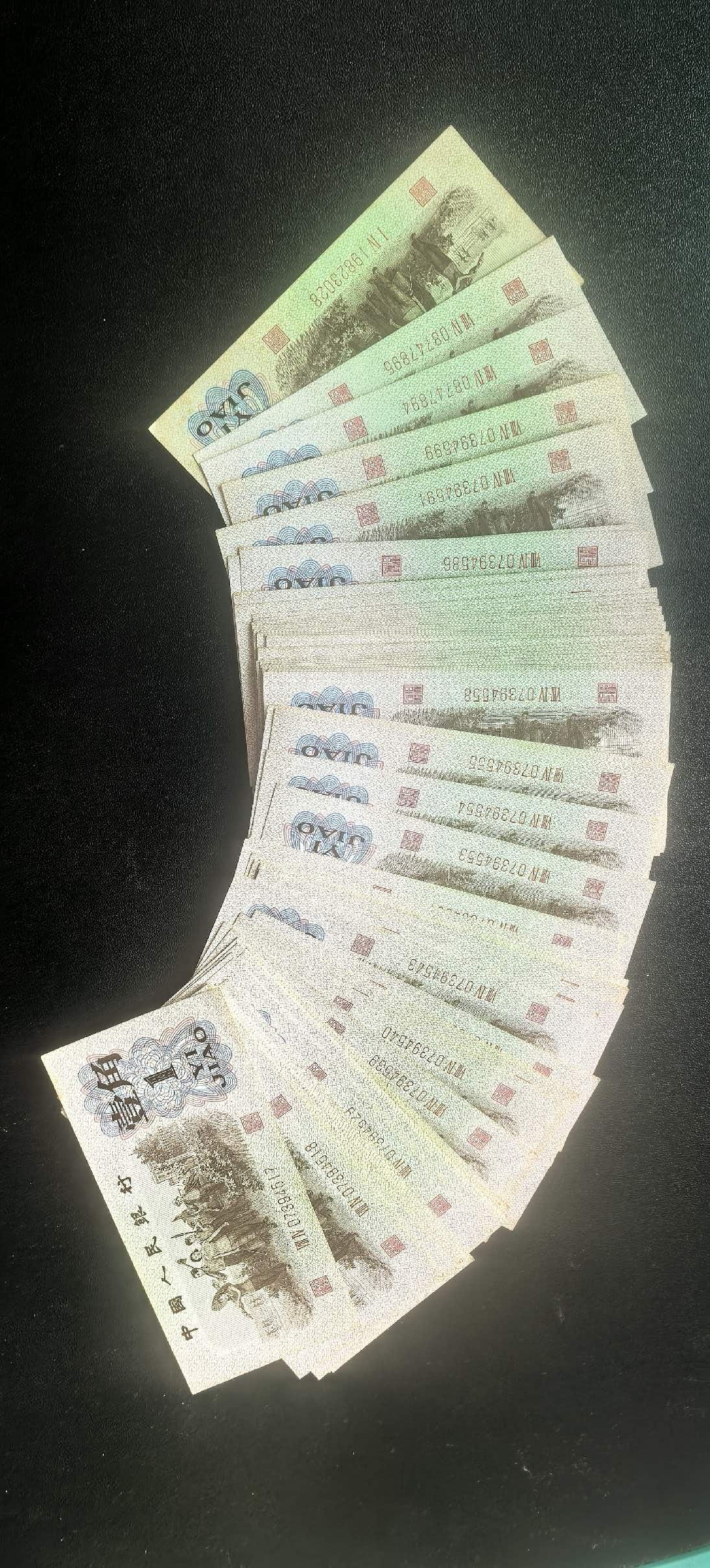 红二平一角72张含三组标十其中一组555豹子号标十, 蓝一角57张含二组标十,以上基本是两刀里的断连,其它散连,都是原票少量差点,其它全新直板。红二平标十120一组,豹子号标十150,散连8元一张。蓝一角标十100元一组,散连6元一张。以上通走不单出。一起120*2+150+42*8+200+37*6=1148元非偏远包邮