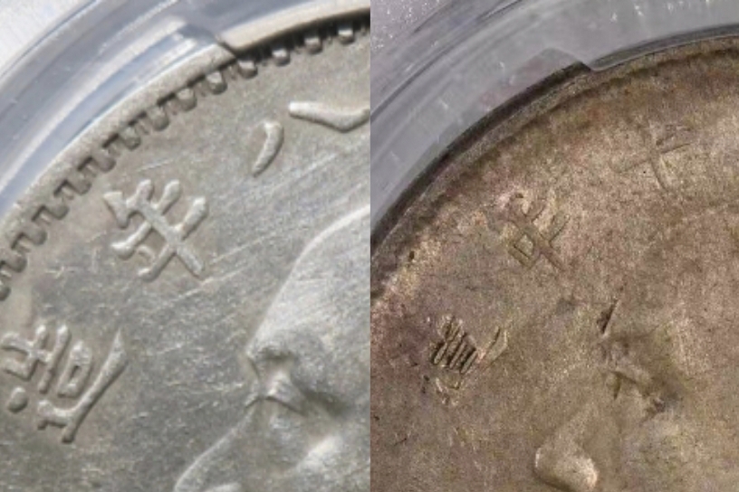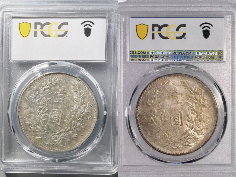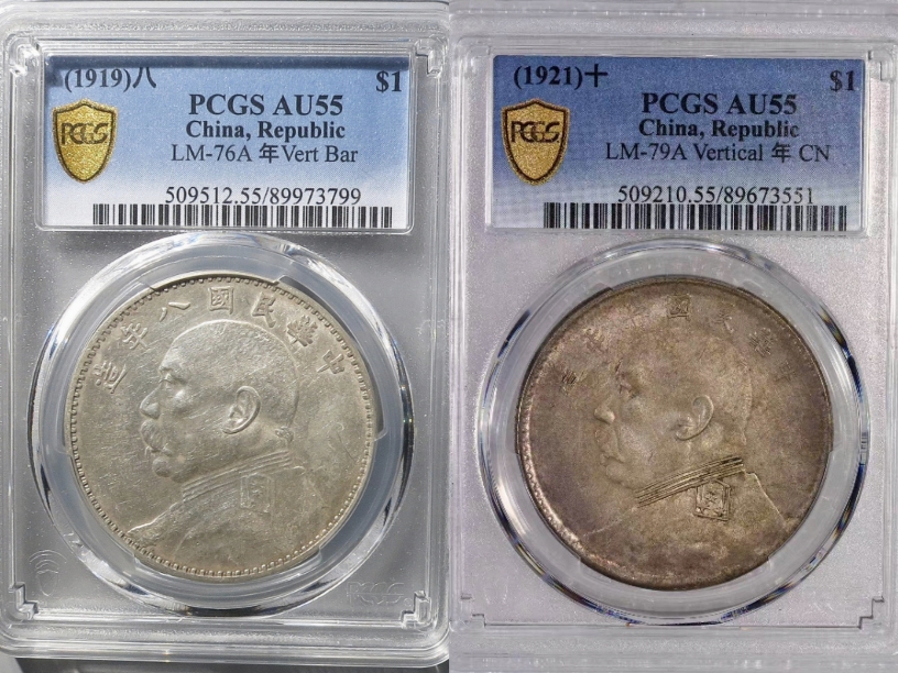 → 大名誉品一对:PCGS-AU55大头八年,十年竖点年 带原光 售价10万