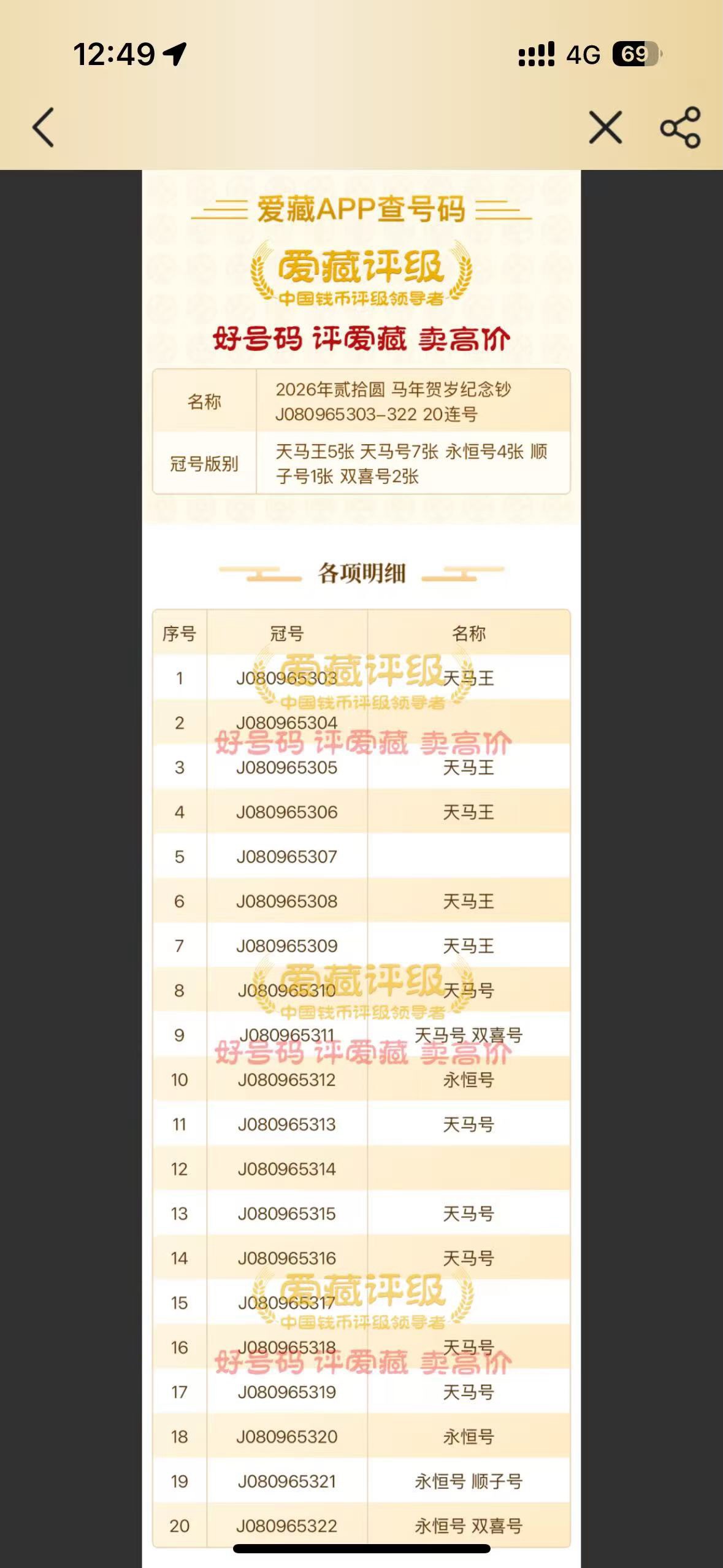 20连号,630元,三包顺丰!