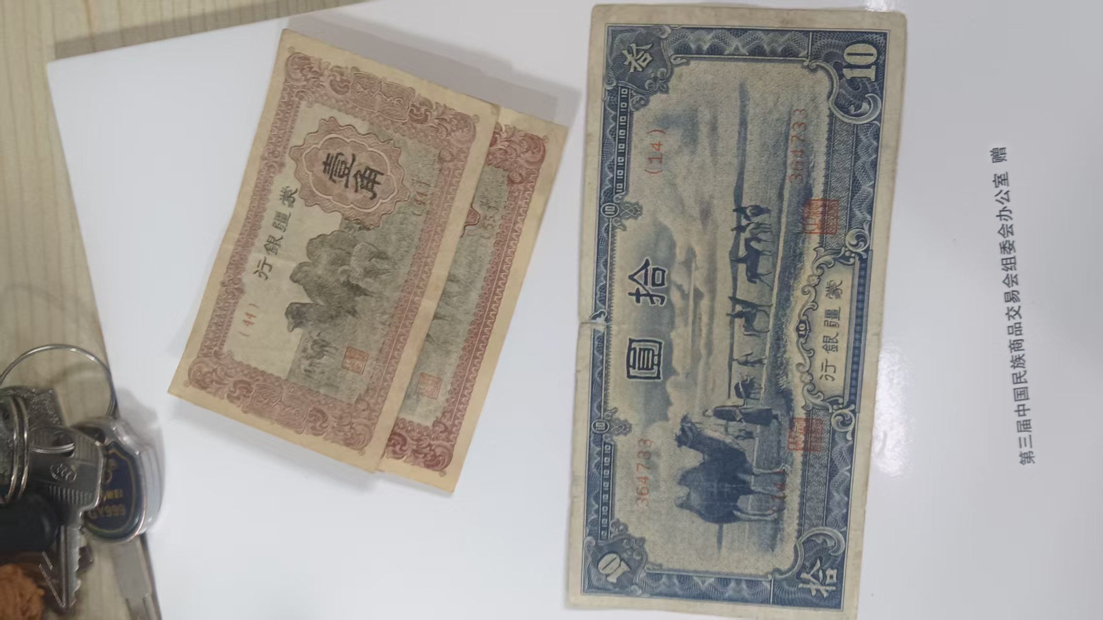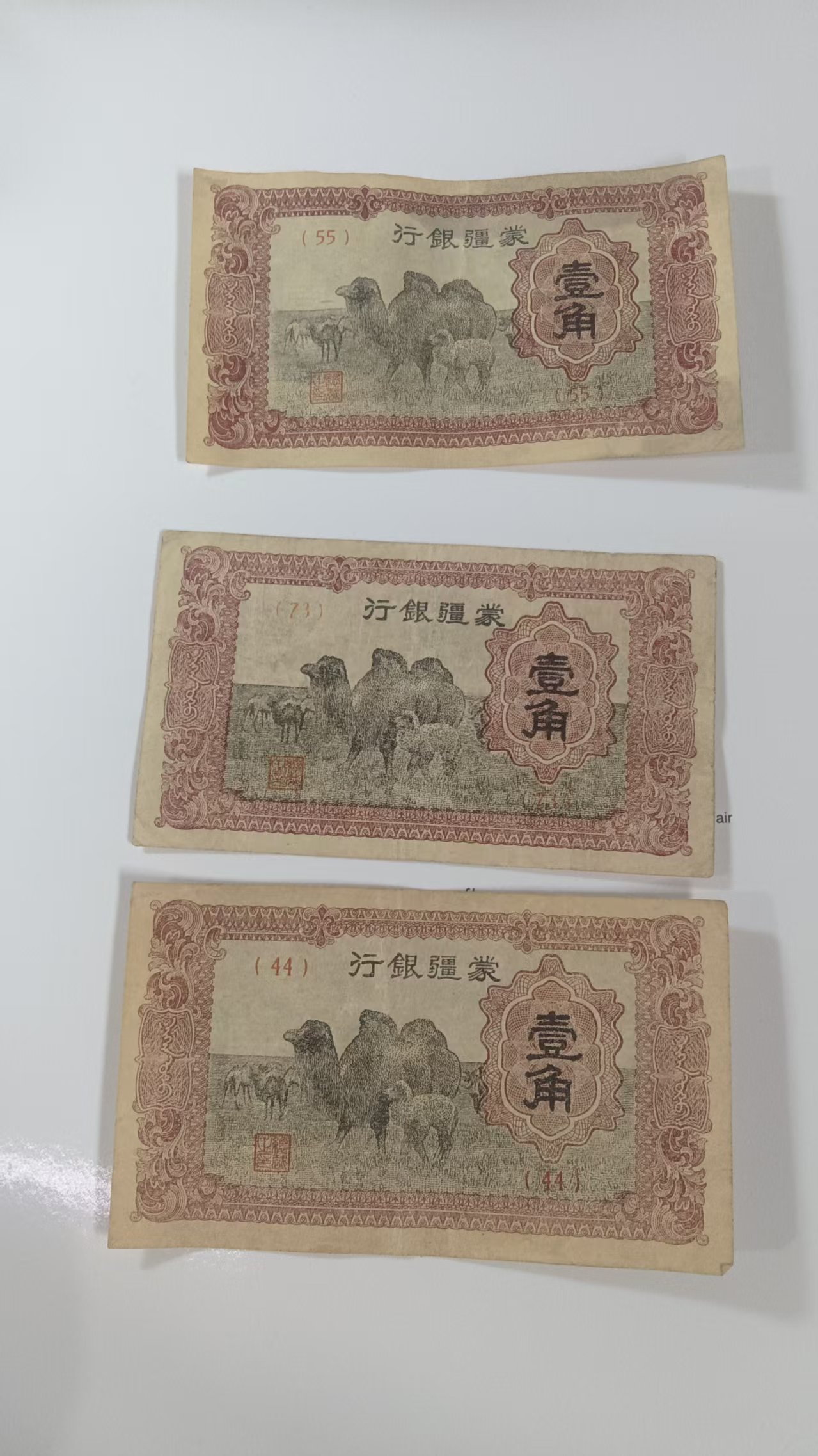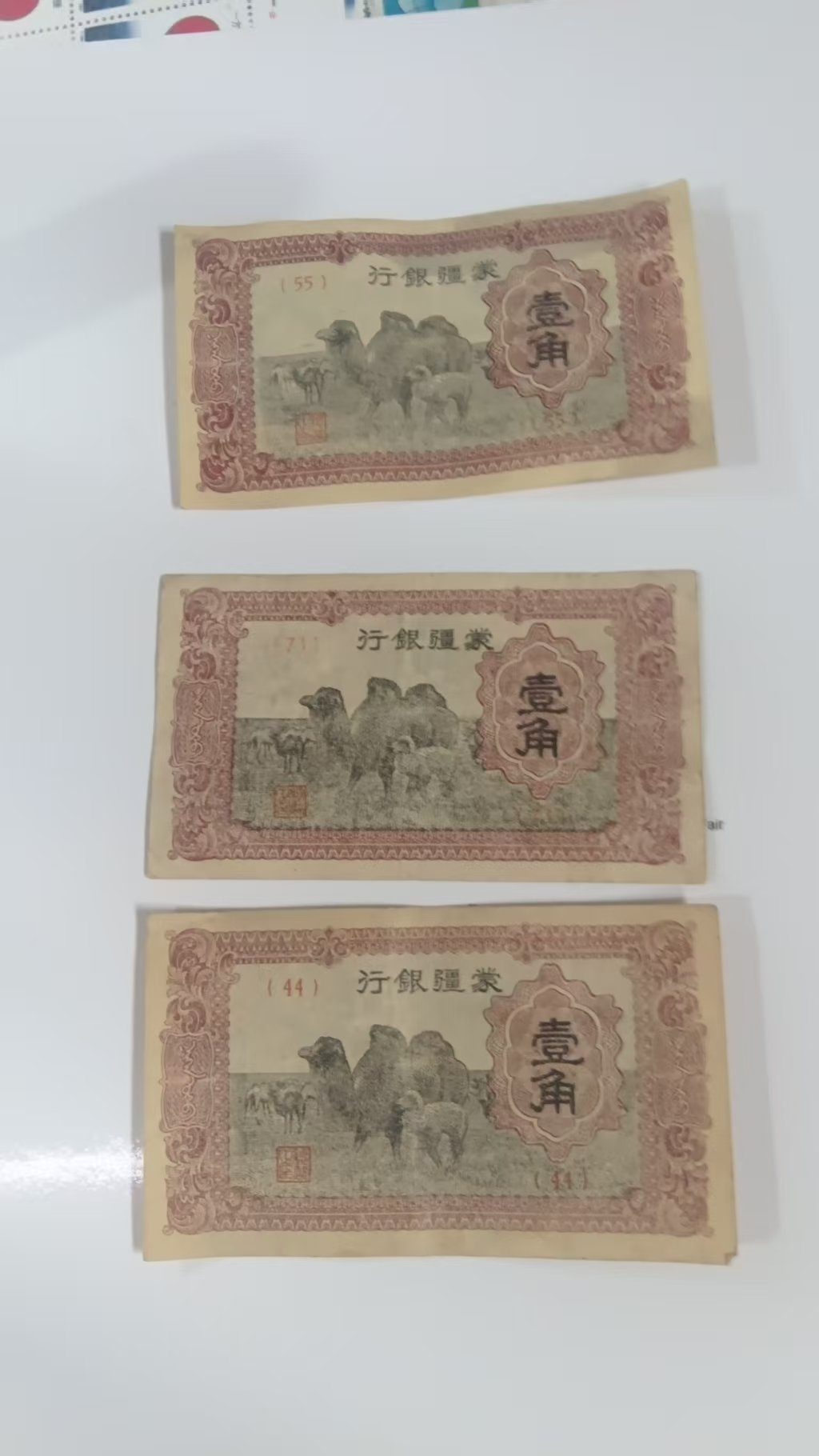 西北一手货,3张蒙疆1角+骆驼10元,都是原票板好,通打600元包邮.