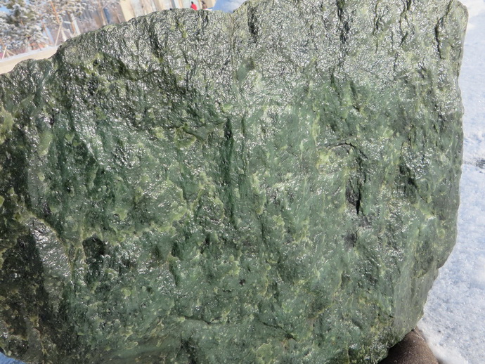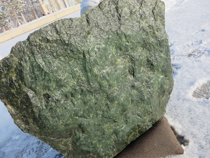 18000元诚心转让一块91斤重的新疆和田且末天然碧玉菠菜绿山料原石