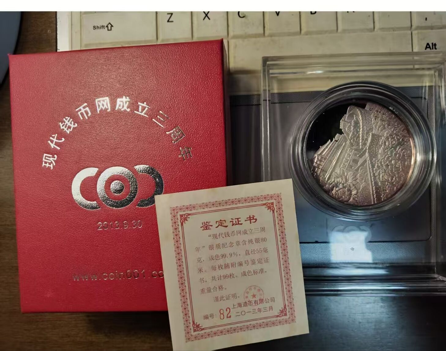 80克现代钱币网第一枚银质纪念章,1枚,五彩氧化状态不错,2560元包顺丰