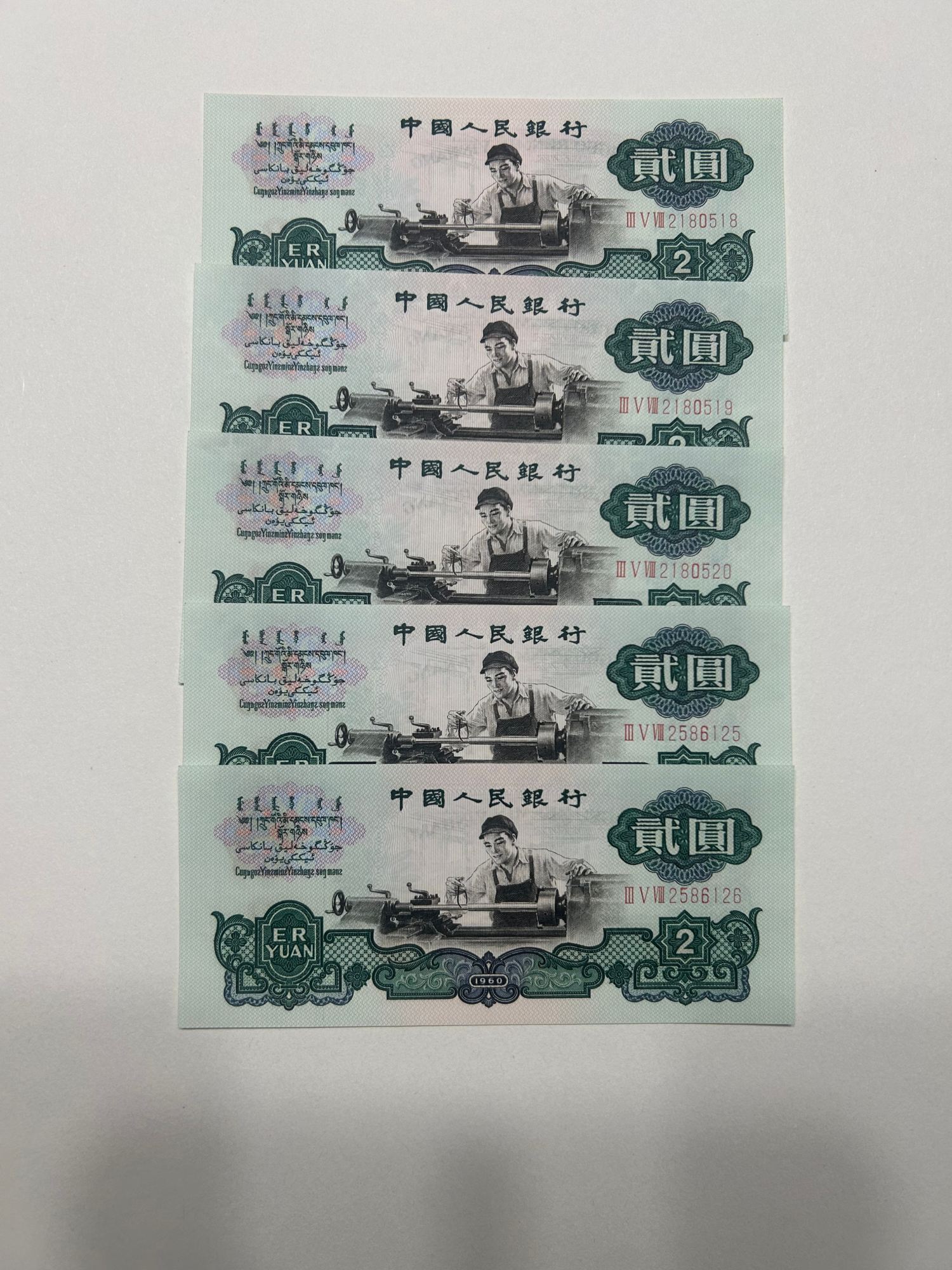 绝 品车工连号5张,无347,灯下无斑,1650/张。