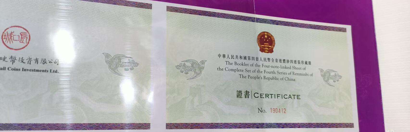 2套连号,钞证对号,包品卖7800元一套