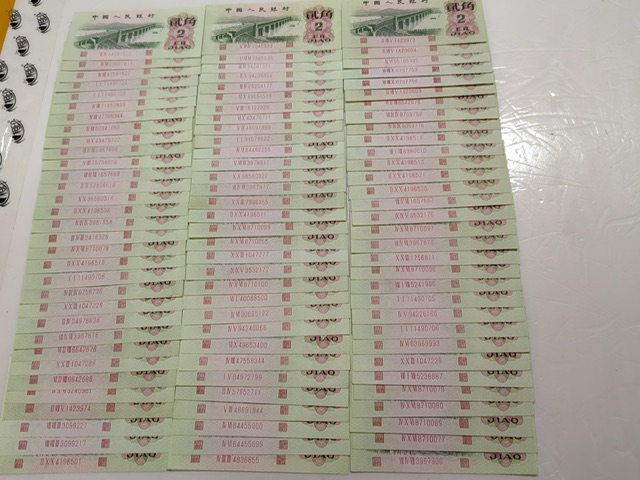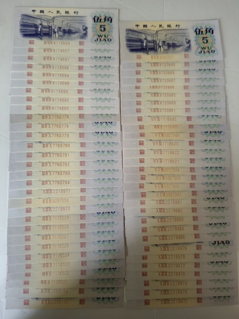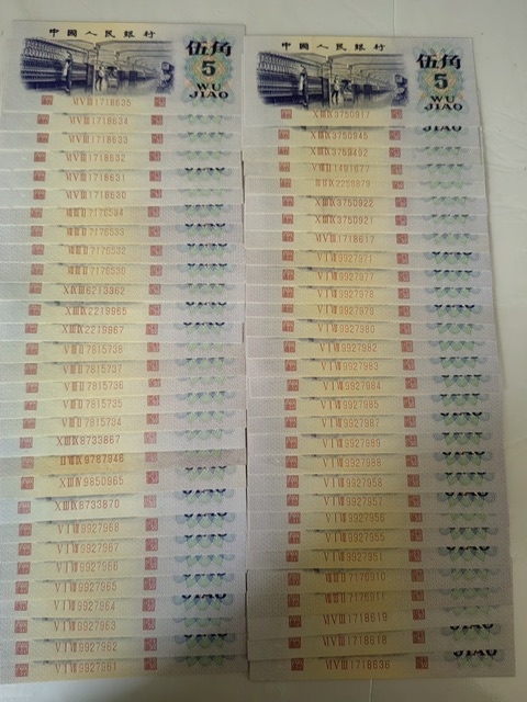 代友售一三版伍角和贰角小连号:伍角120枚X37.5元/枚(品相很好)贰角96枚X17·5元/枚,先款后货,诚要者电联谢谢!13973606066