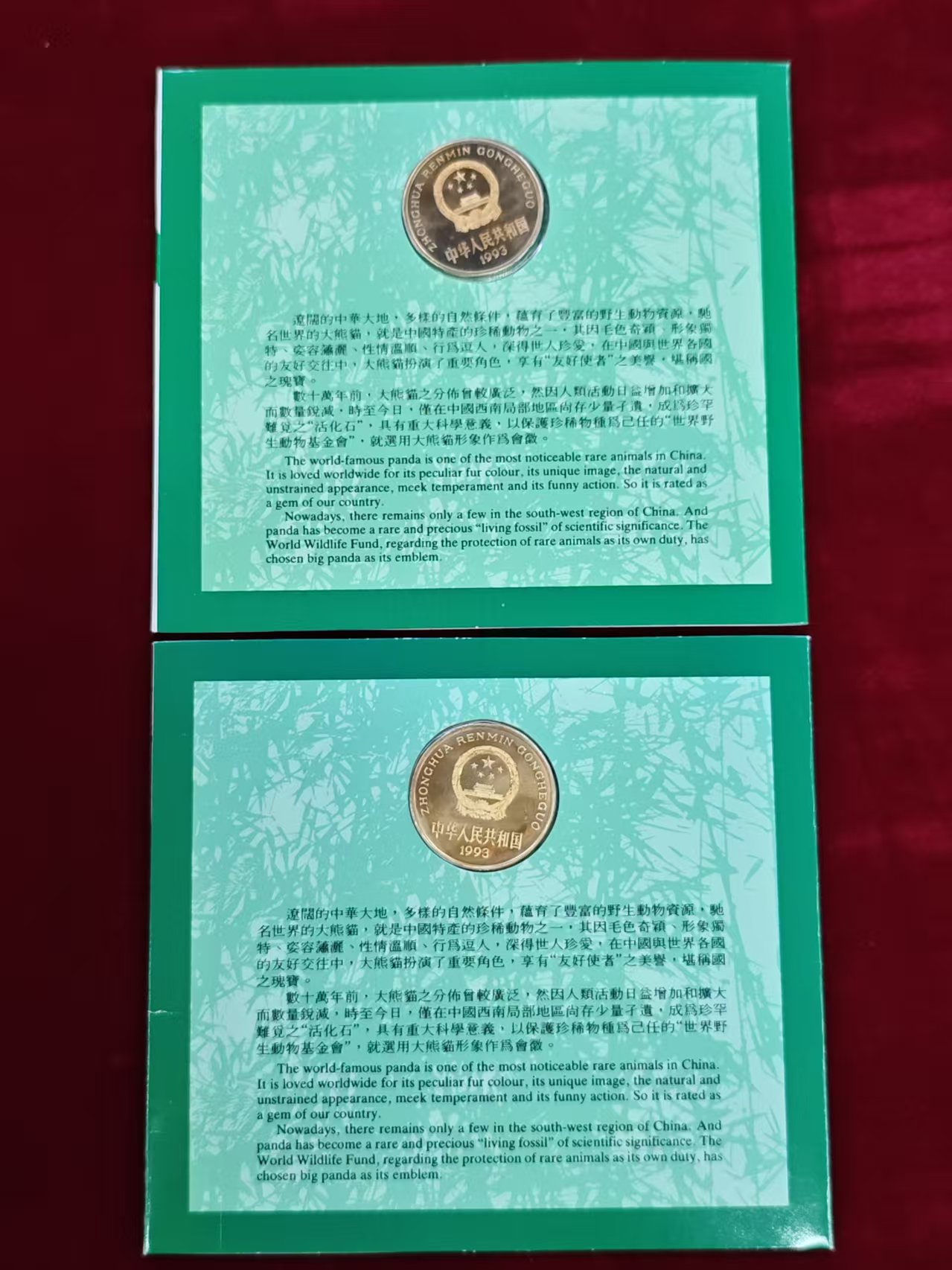 → 低卖;珍稀动物大熊猫装帧卡册纪念币