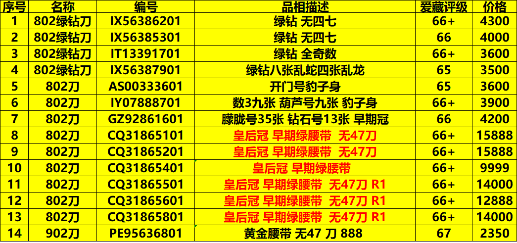 802c冠 刀 绿钻 902 豹子身刀货