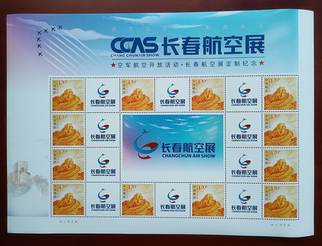 120分精美长城个性化版票,主题是长春航空展。