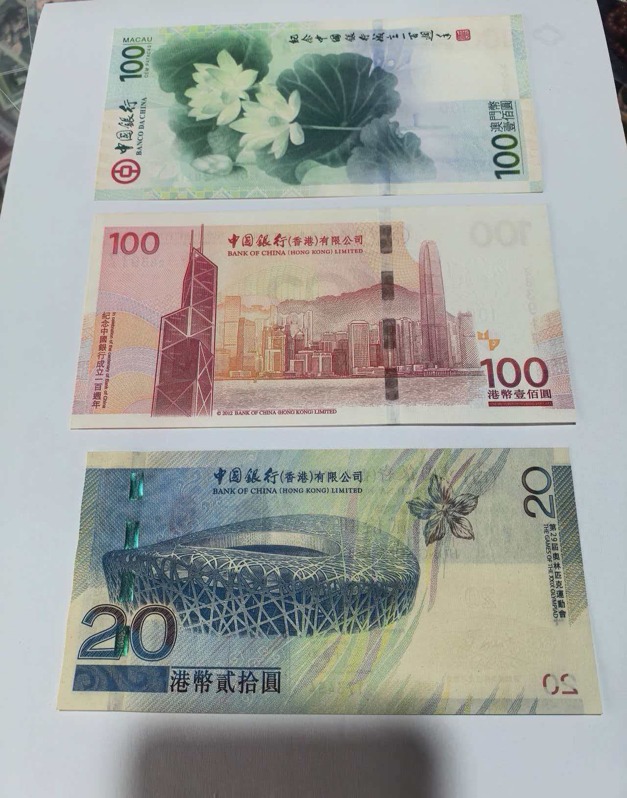3张480元,荷花钞边缘有黄,奥运整张发黄