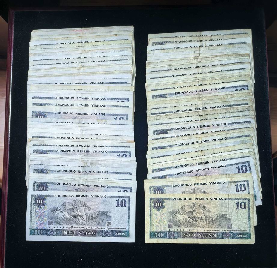 → 出售四版拾元纸币原票100张流通品8010纸币不缺肉