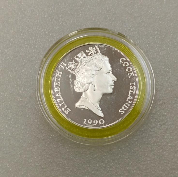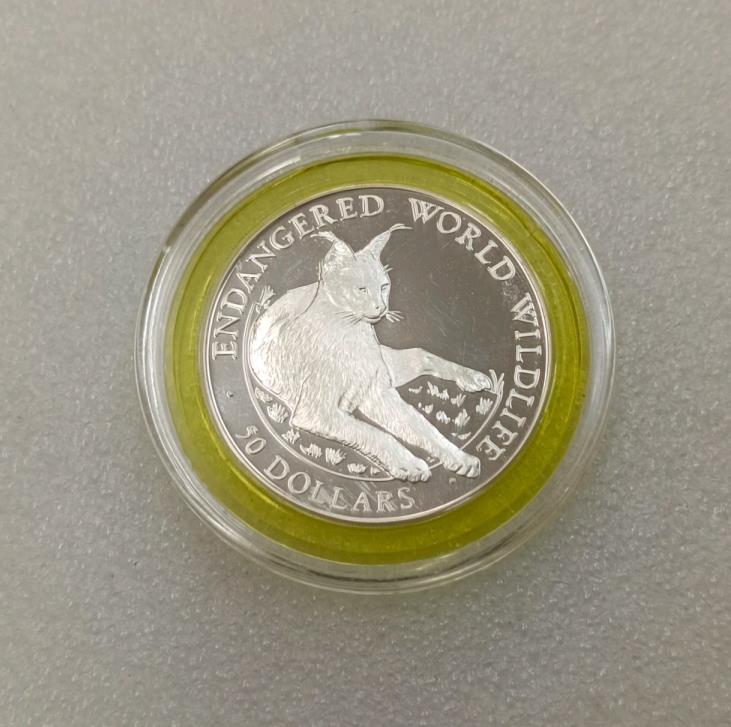 1990年库克群岛保护动物系列-猞猁精制银币1枚