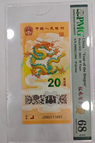 出小龙钞01568,0159龙四金马号,PMG68