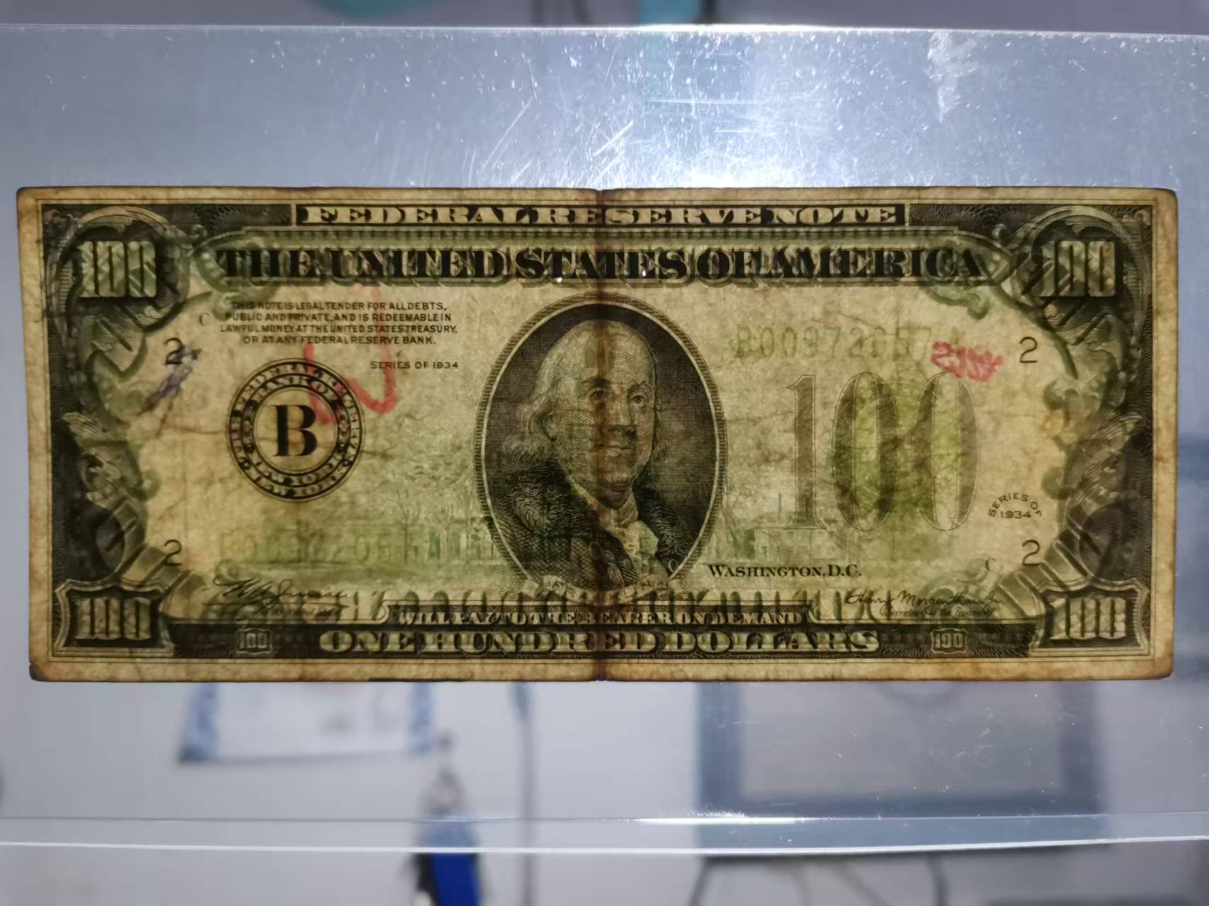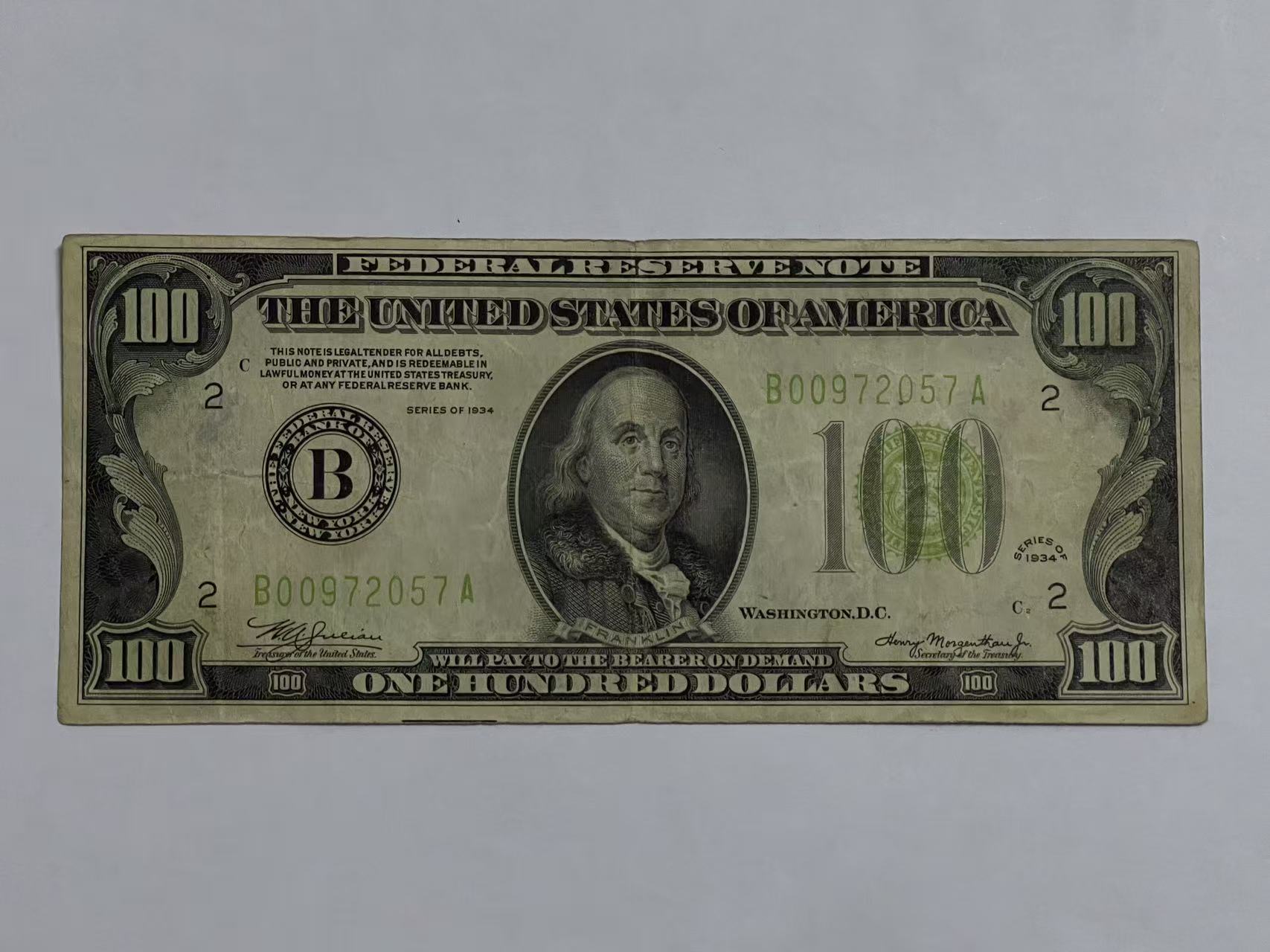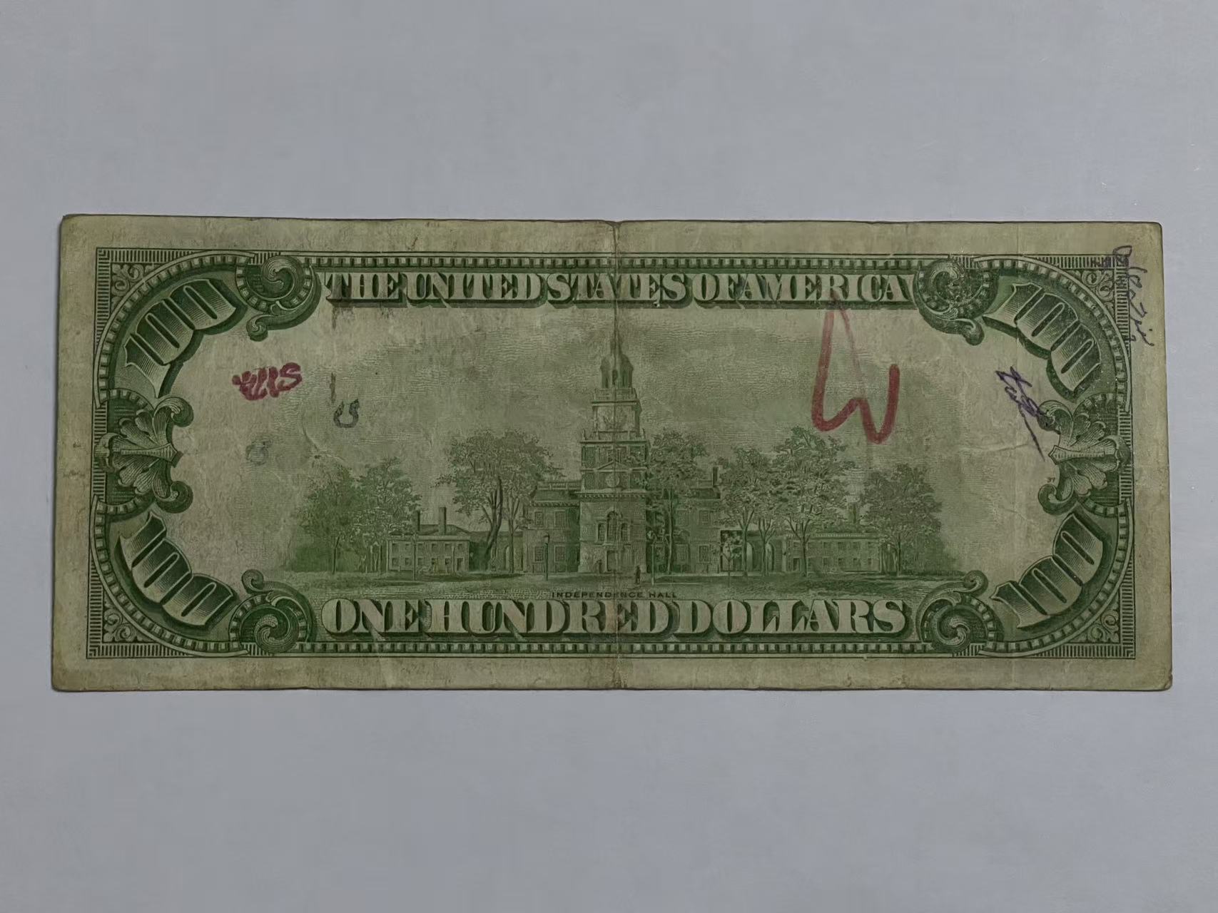 1934年老版美元一张背面有字,保真如假到付退回,750元包邮