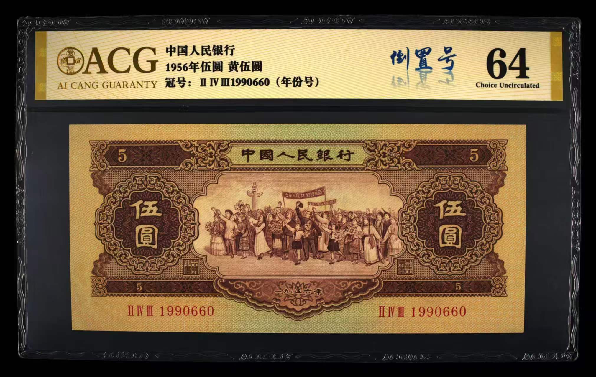 二版黄5元爱藏金标64年份头倒置号,全新直版,水印清晰,售价1800包顺丰