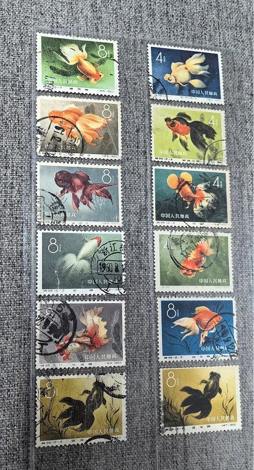 特38金鱼信销一套12枚(缺-12一枚,多-6一枚),多有小揭薄等瑕疵,总体中上品,售160元包挂号。
