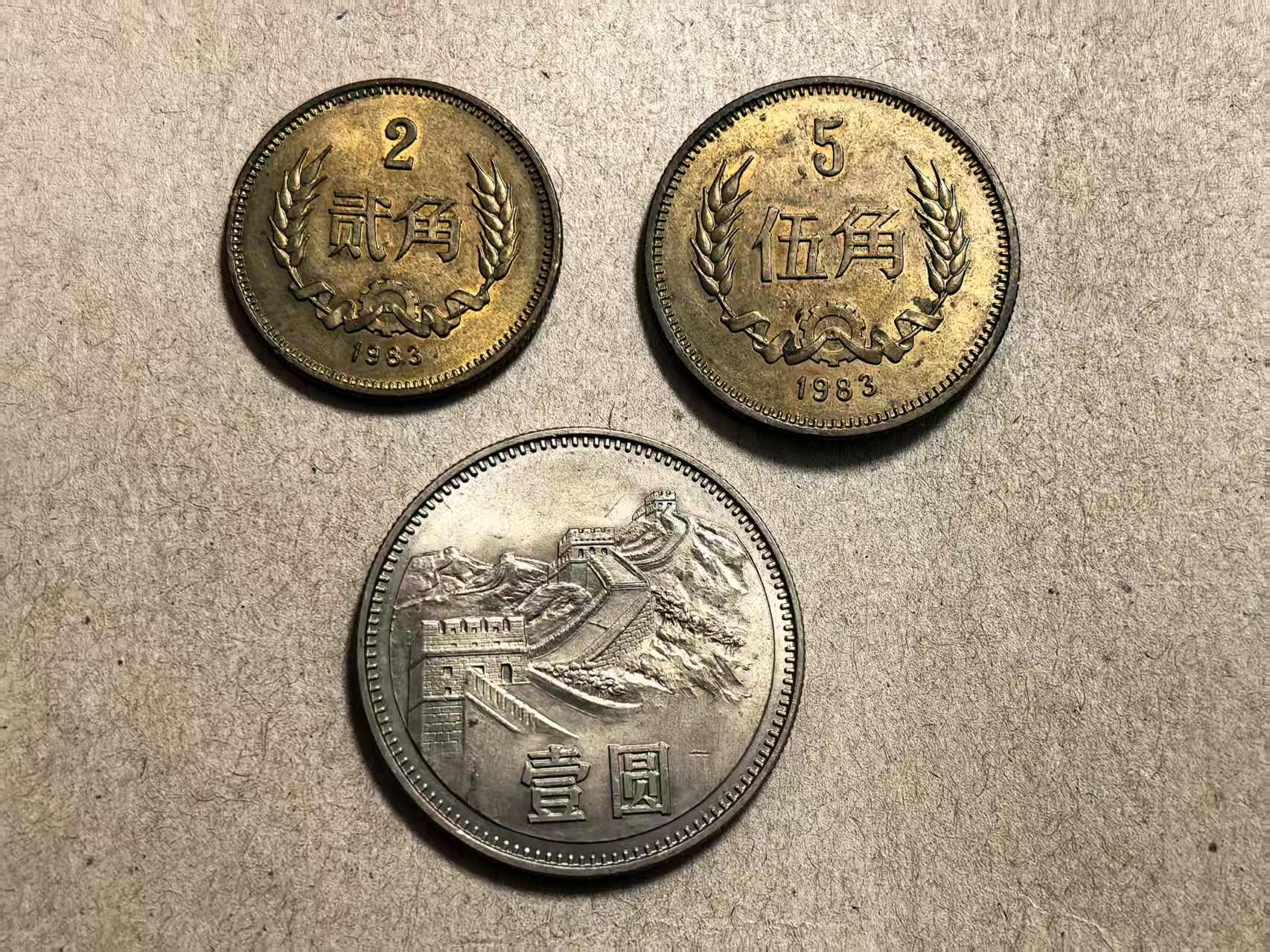 → 出长城币83年贰角、伍角、壹元光品各1枚